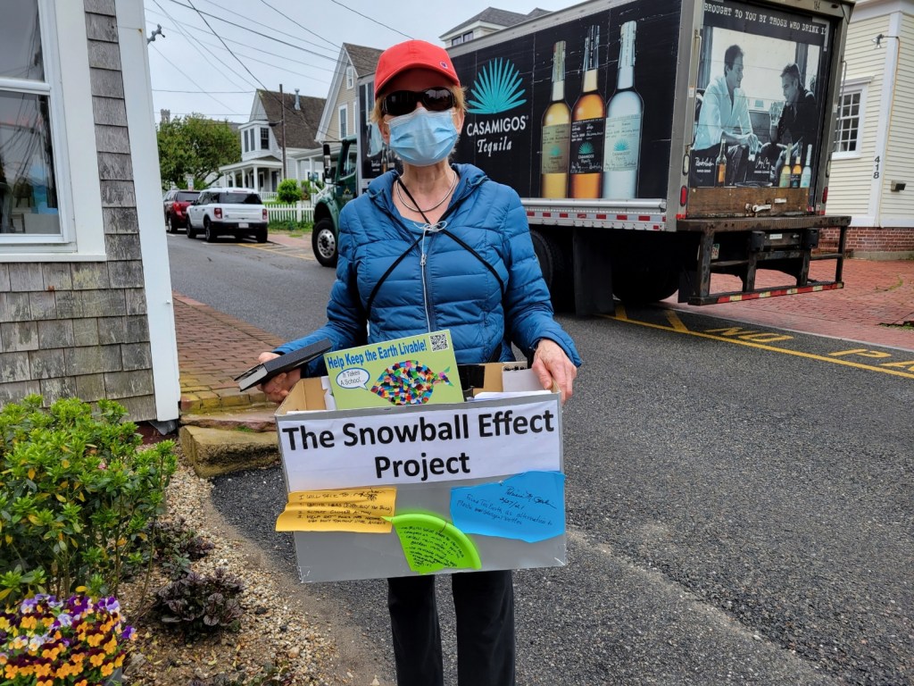 I walked the streets for three days in Provincetown this year and collected 314 pledges. In addition to pledges focused on recycling and picking up trash, there were many centered on avoiding fast fashion, minimizing air travel, and using reusable and natural cleaning methods. Three years ago, two people said they were buying electric cars, this year there were many.